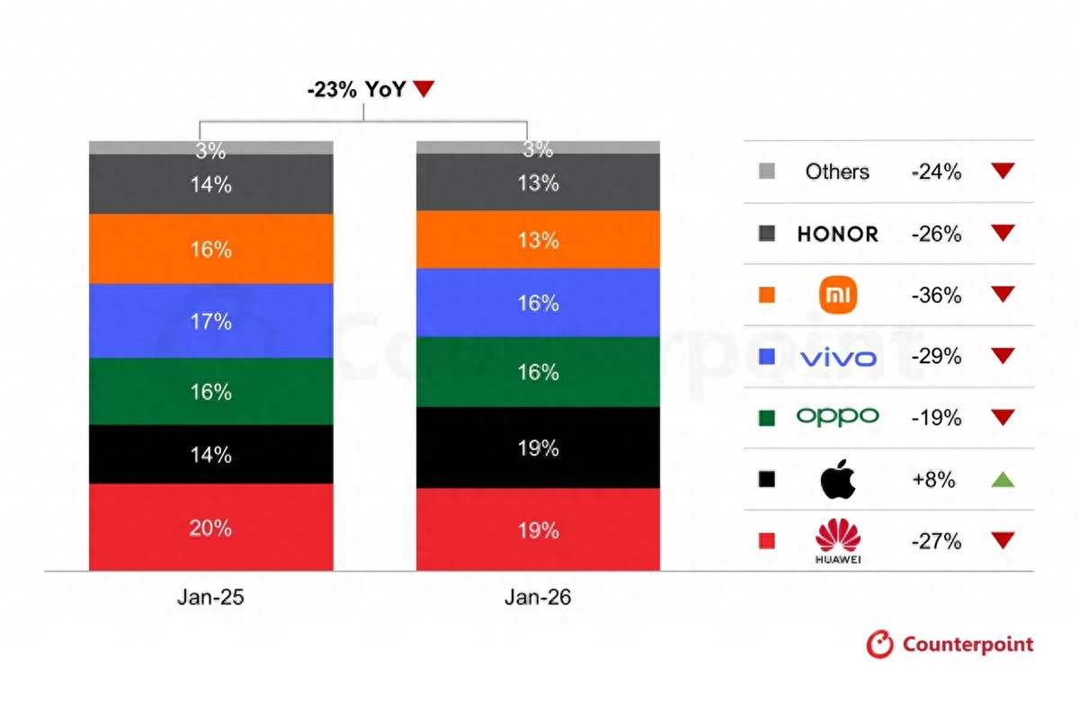 临近春节,大家都为自己购置什么东西了吗?按理说春节之前应该算是“收获”的季节,不是双薪就是年终奖,总算有底气有理由消费一下了,但今年好像不太一样。根据统计显示,1月中国智能手机销量同比下滑23%。看来这个时间点大家都不太想在手机上花钱了。