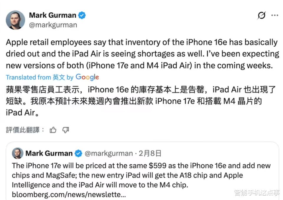 预计苹果将在未来几周内推出iPhone 17e以及M4芯片版iPad Air,因此可以看出来,新机的迭代速度确实正在加快。