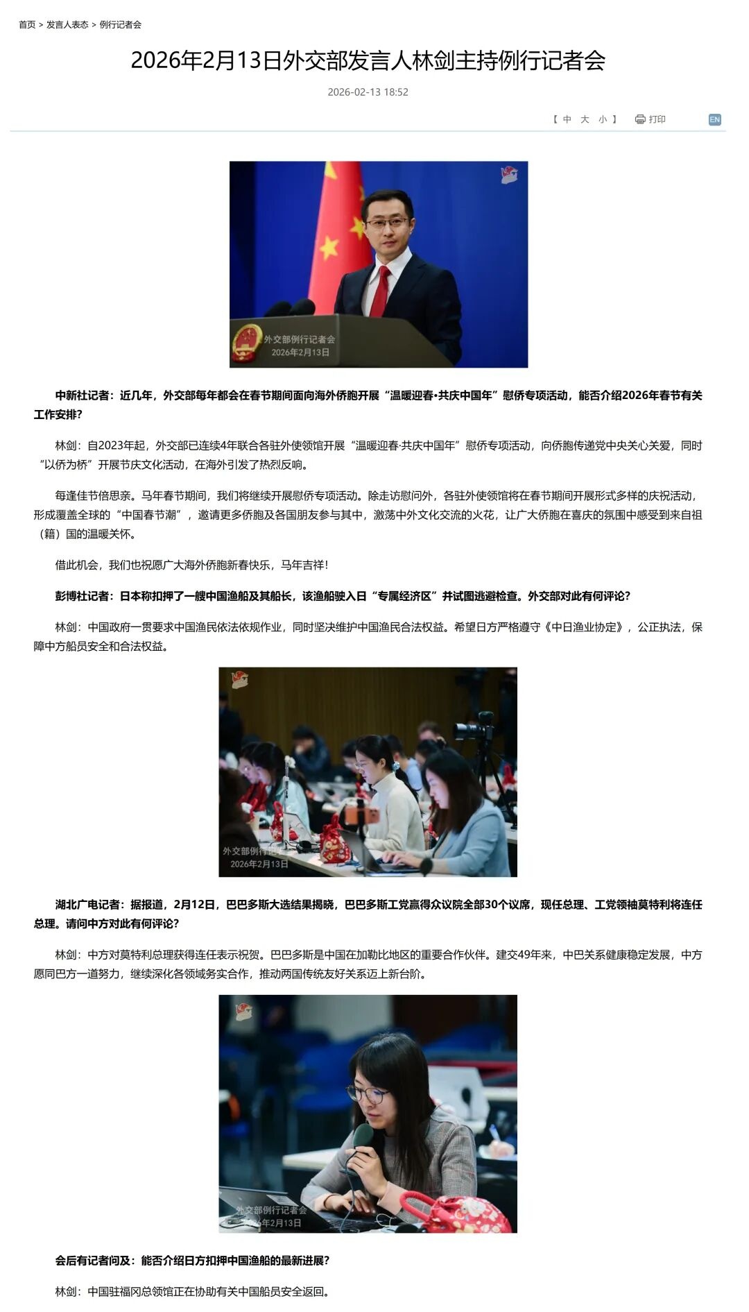 林剑:中国驻福冈总领馆正在协助有关中国船员安全返回。