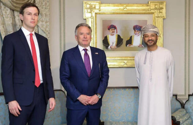 威特科夫(中)和库什纳在阿曼阿曼外交部