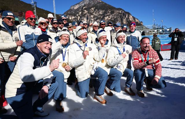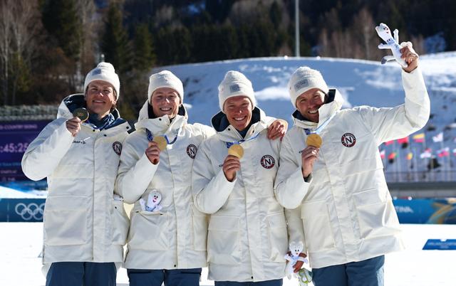 没有人能阻挡约翰内斯·赫斯弗洛特·克莱博。泰塞罗越野滑雪体育场见证了挪威“滑雪魔王”开创冬奥会历史的新篇章。在男子4×7.5公里接力赛中,29岁的他带着22.2秒的优势悠闲滑过终点,尽情享受现场观众的欢呼声。与队友携手夺得冠军的同时,克莱博也将自己的冬奥会金牌总数提升至九枚,由此成为史上拥有冬奥会金牌最多的运动员。