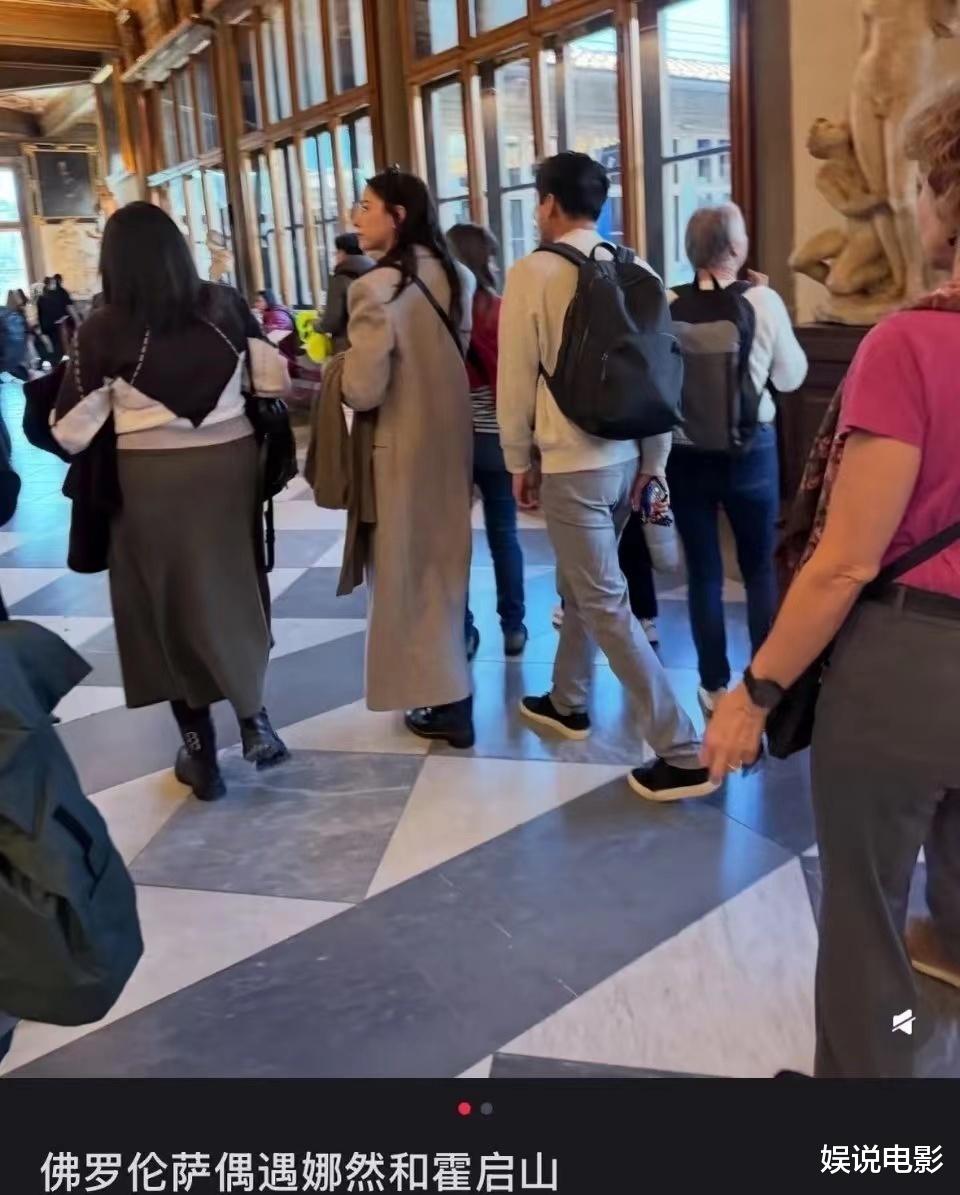 从多份目击信息来看,娜然与霍启山在佛罗伦萨乌菲兹美术馆排队时被网友拍到,两人虽无过度亲密举动,但形影不离,互动自然。娜然身着灰色长款大衣,气质出众,霍启山则背着双肩包紧随其后,被解读为“低调守护”的姿态。更值得注意的是,娜然与