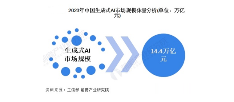 据工信部测算数据,2023年我国生成式AI的市场规模约为14.4万亿元;同时,预计到2035年将突破30万亿元,在全球总市场规模(接近90万亿元)中占比超过35%,成为全球AI产业链的重要一环。
