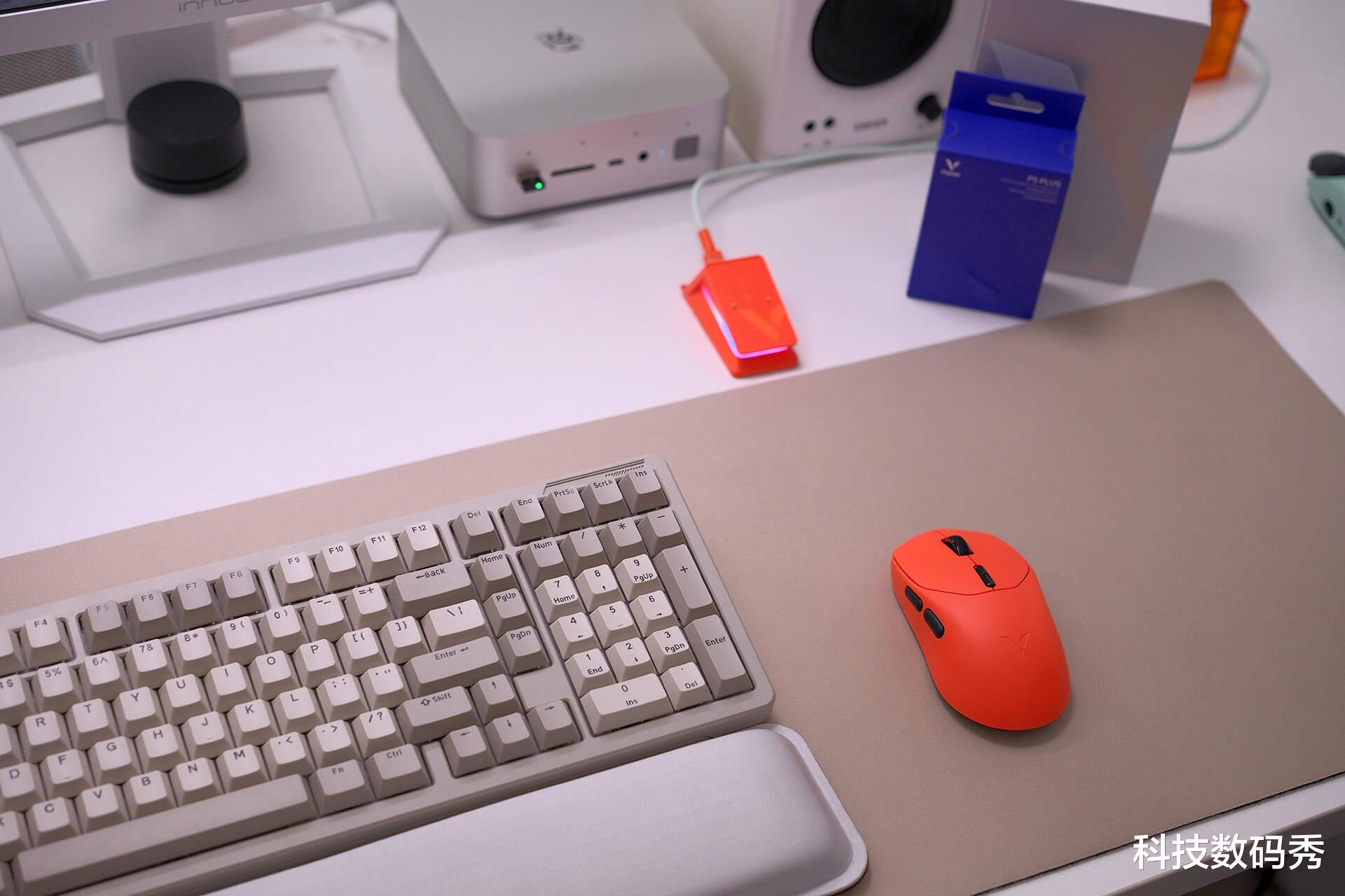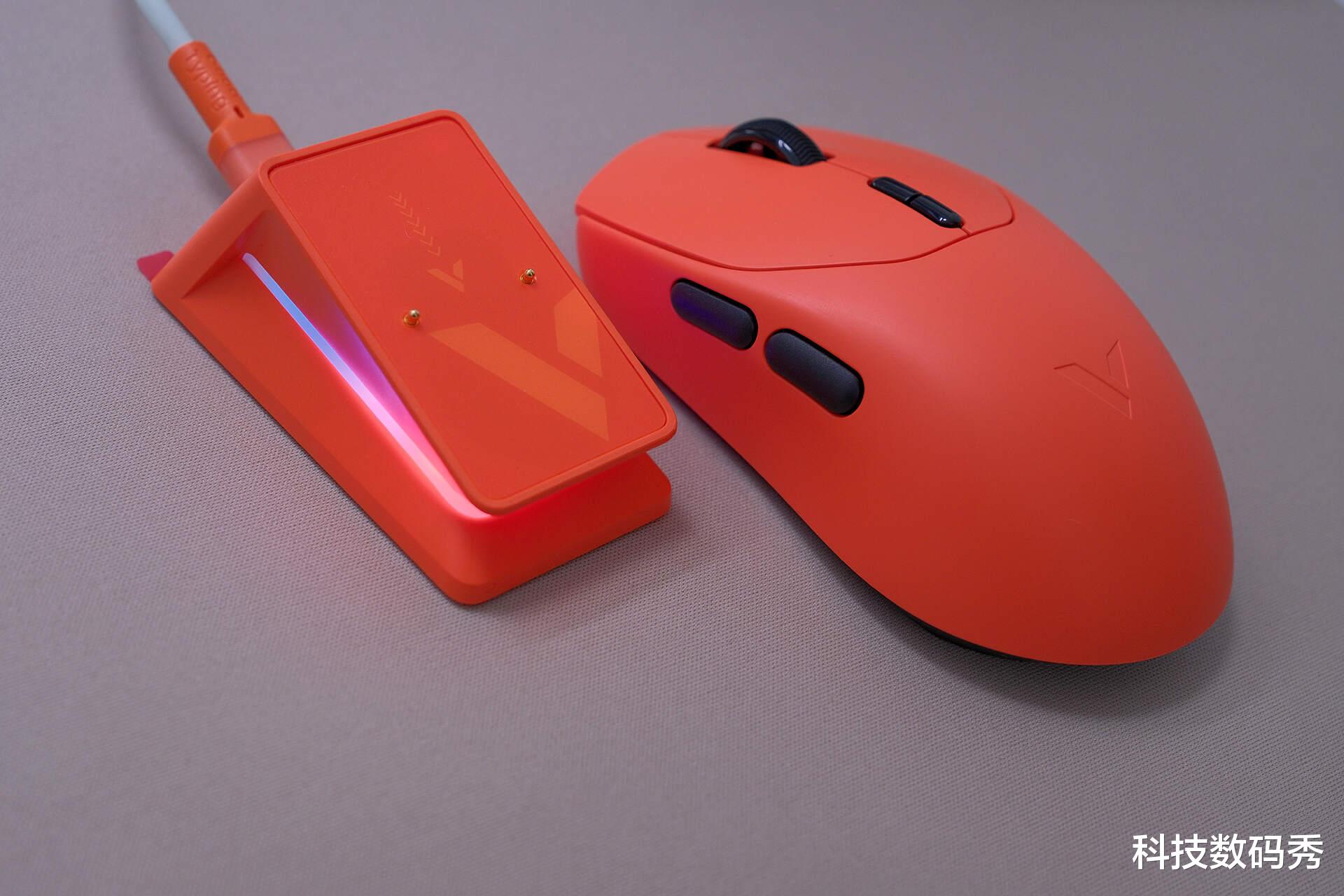 雷柏VT1机身尺寸贴合中小手手掌大小,约49g的轻量化设计,无论是抓握、趴握、指握能找到舒适的握持角度,不会出现大手鼠标的空握、硌手问题。焰影橙的配色,橙色寓意“心想事成”“大吉大利”,适合作为电竞男友/女友的礼物,担心白色不耐脏、黑色太沉闷,橙色是“耐脏且亮眼”的折中选择。鼠标表面采用亲肤防滑涂层,触感细腻的同时,能有效提升握持摩擦力,即便长时间游戏手心出汗,也能牢牢握住鼠标,避免操作打滑,兼顾了手感与耐用性。