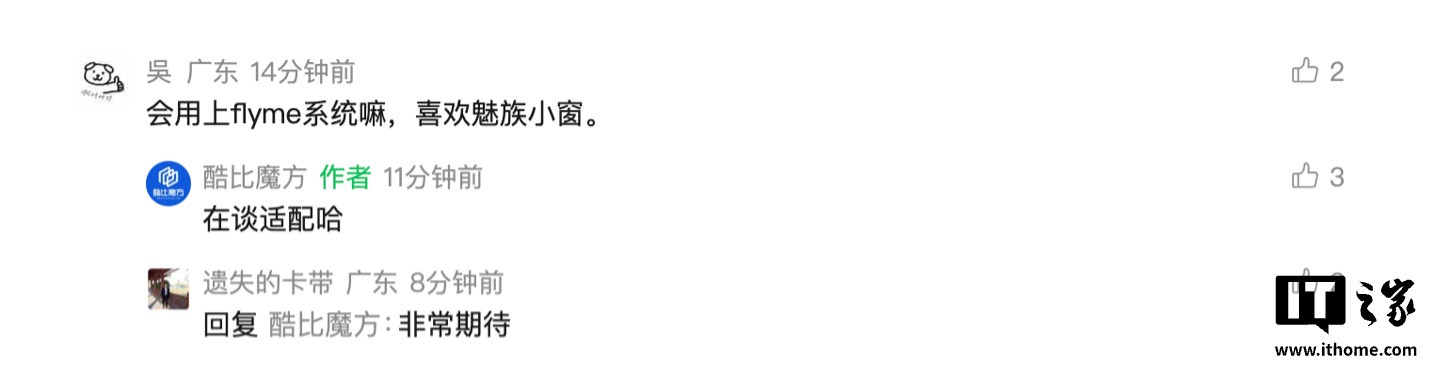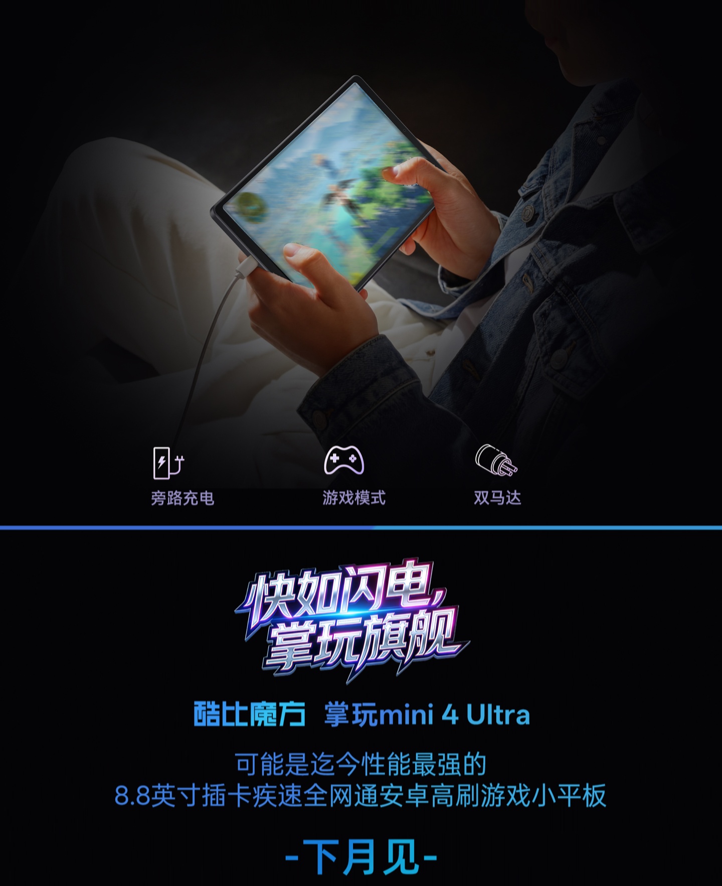 IT之家2月28日消息,今天傍晚,酷比魔方官方公众号发文预告,8.8英寸插卡疾速全网通高刷游戏小平板“掌玩mini4Ultra”新品下月见。而在留言区,有网友询问“是否会用上Flyme系统”,得到肯定回复:“在谈适配哈”。