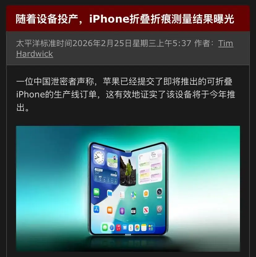 据博主@定焦数码近日报道,折叠屏iPhone的开发进展顺利,正在稳步推进中,苹果方面已提交了该机的生产线订单。
