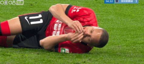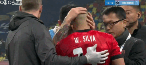 在昨夜的中超揭幕战中,代表蓉城首发出战的韦林顿-席尔瓦在第15分钟,一次边线附近拼抢中,面部遭到37岁的前国脚、新鹏城队长姜至鹏的肘击,当场血流不止,痛苦捂着脸躺在地上。