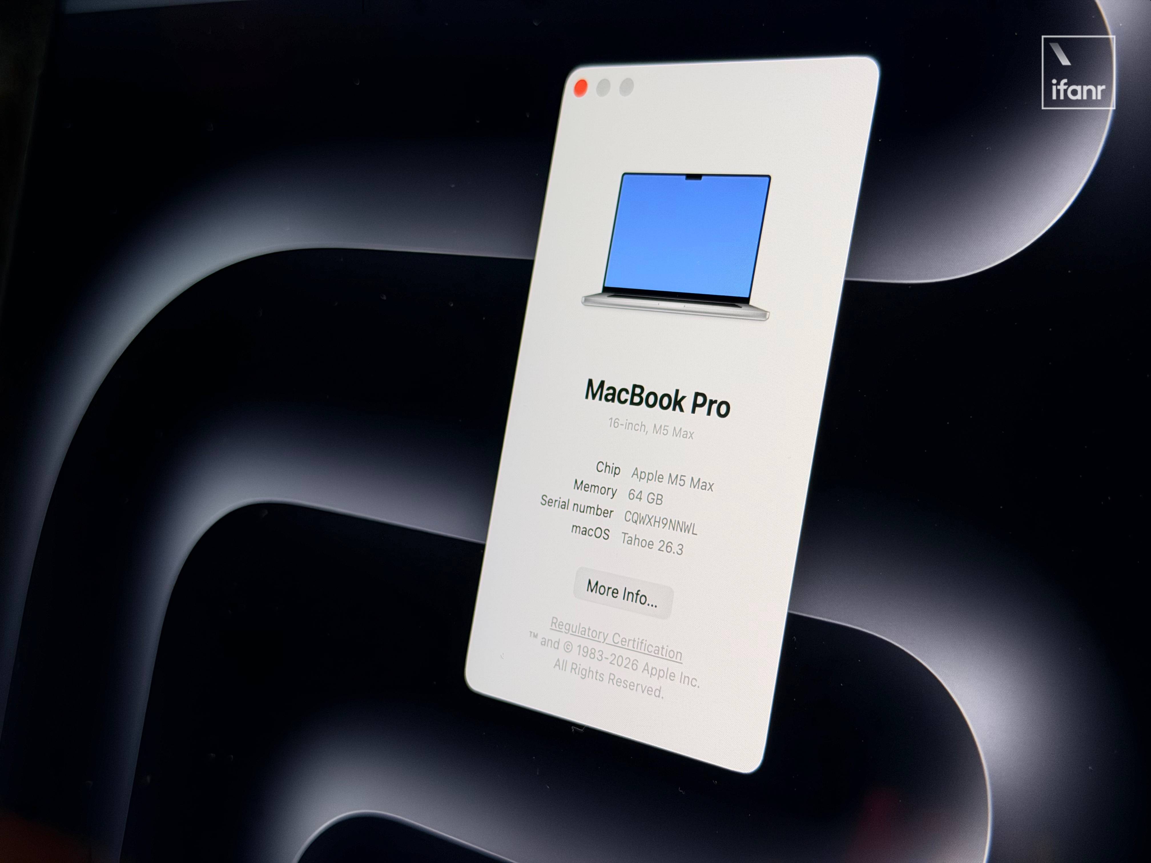 但从 macOS Tahoe 在上面丝滑运行的效果来看,M5 Pro 和 M5 Max 的性能底线是绝对没有问题的。