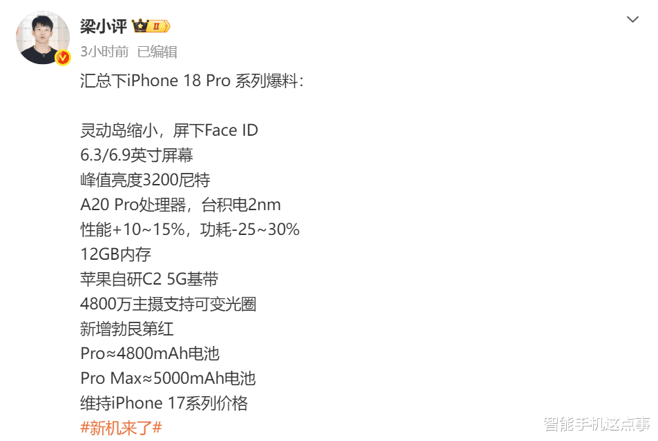 原因也非常的简单,那就是近期有博主汇总了一波iPhone18 Pro系列的爆料信息,加上之前各路分析师和供应链的消息。