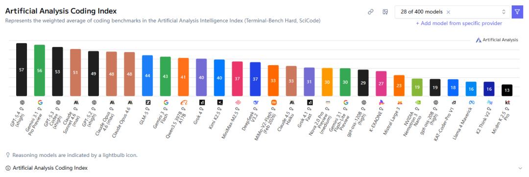 首先是 Artificial Analysis 的评测榜单,如预想一般,智能程度、编码能力、代理能力同时登顶: