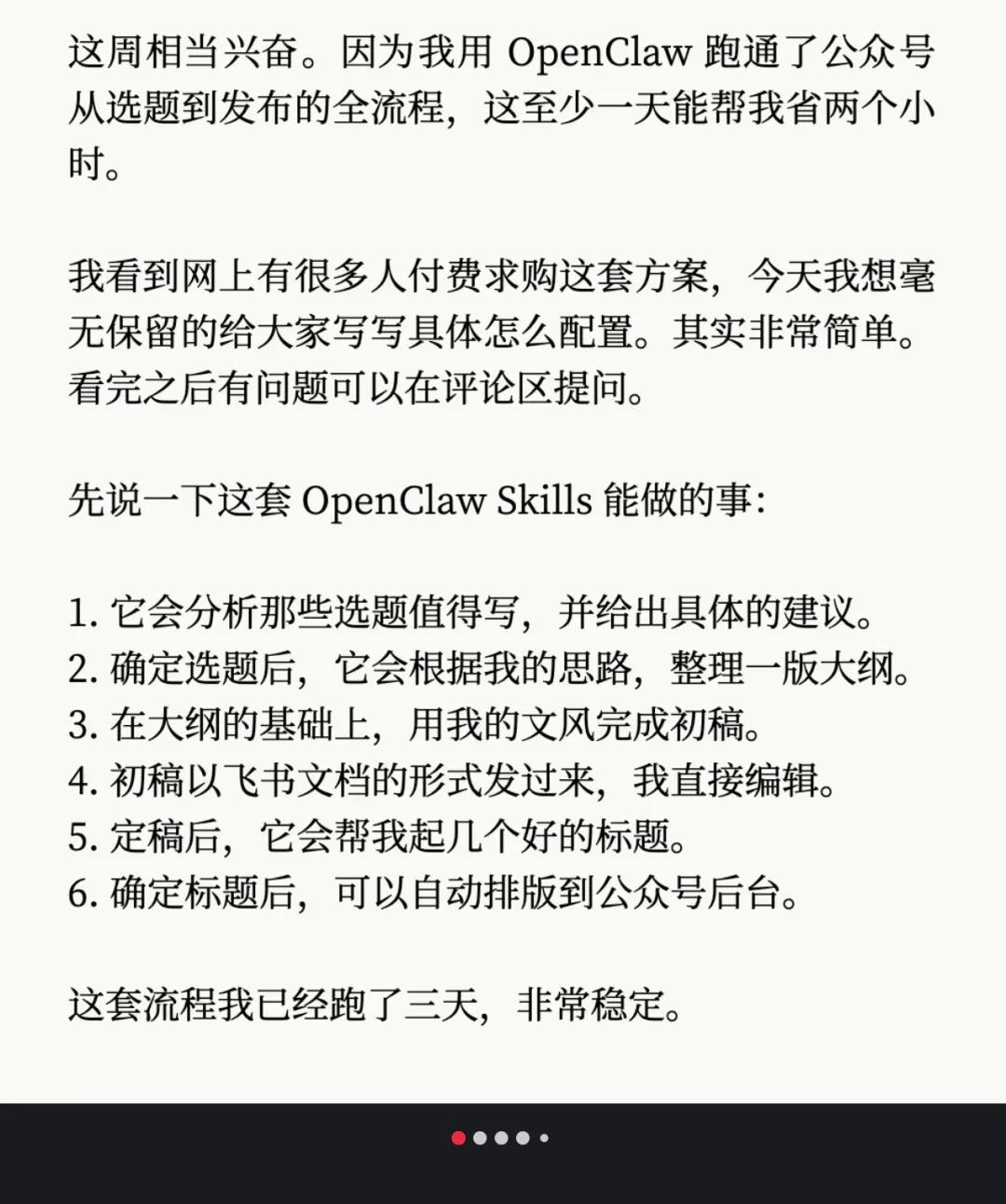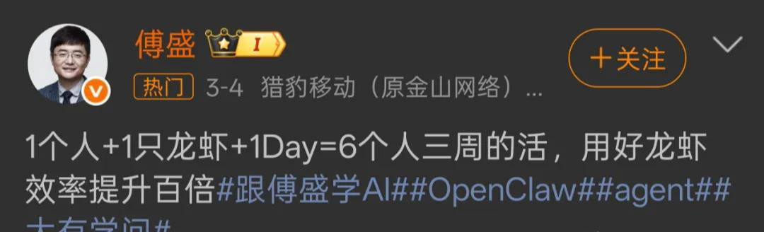 在春节的时候,在病床上较能工作的猎豹移动老板,就用8个OpenClaw,实现了每日6篇推文的更新,给公司六百多名员工个性化拜年,几十万播放的短视频等等任务。