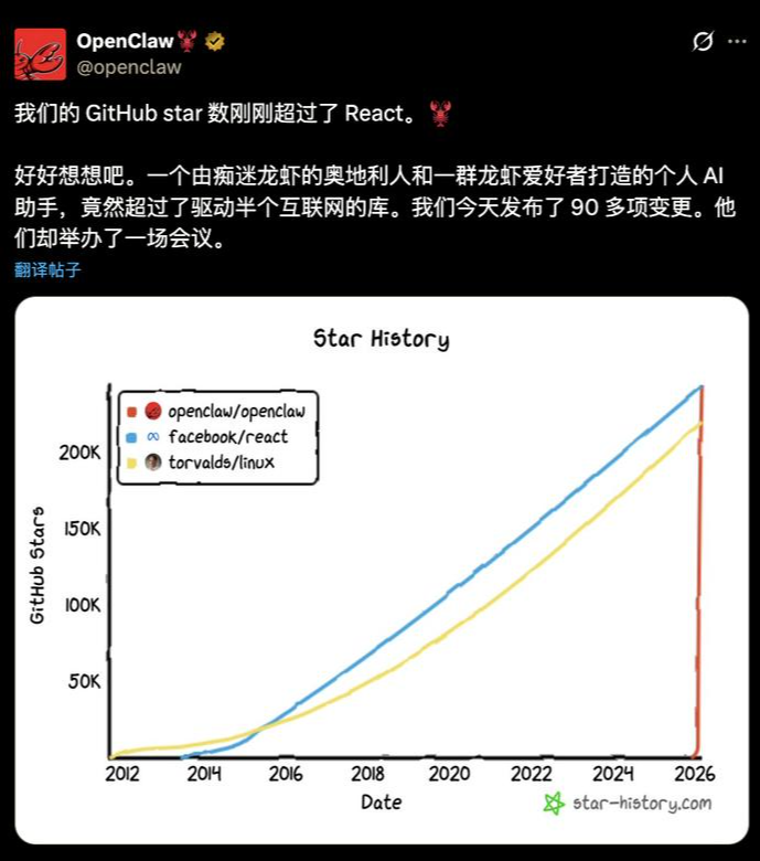 它也一度成为了GitHub中,增长最快最受欢迎的一款纯软件类的开源智能体之一。另外一边OpenClaw不仅仅在国内掀起了代装热潮,在国外这股热潮也同样高涨。