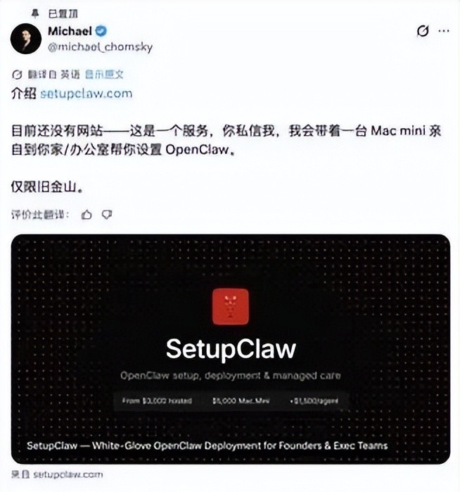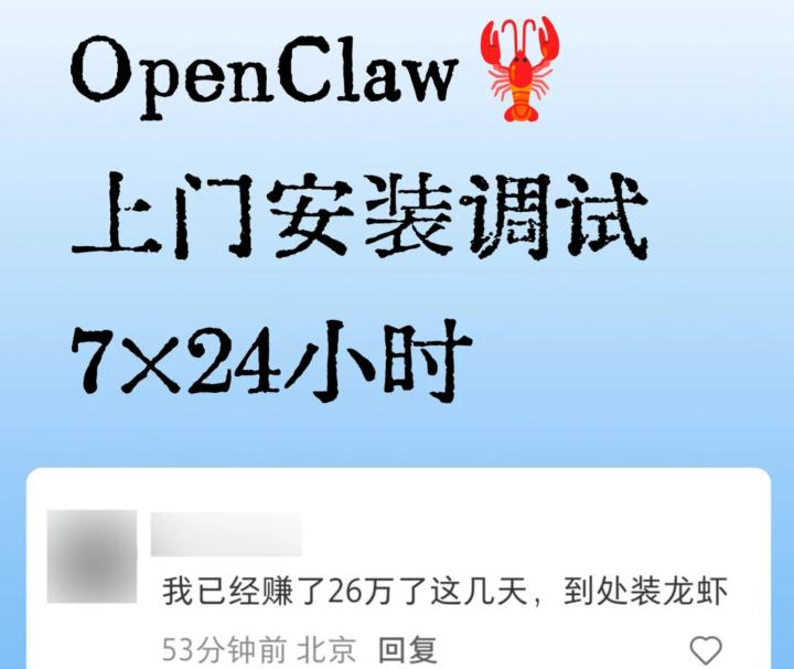 这种有点门槛的安装过程,也在国内催生了相关的“上门安装”产业链,而这些人也很可能是国内第一批,切切实实的吃到“龙虾”红利的人之一。