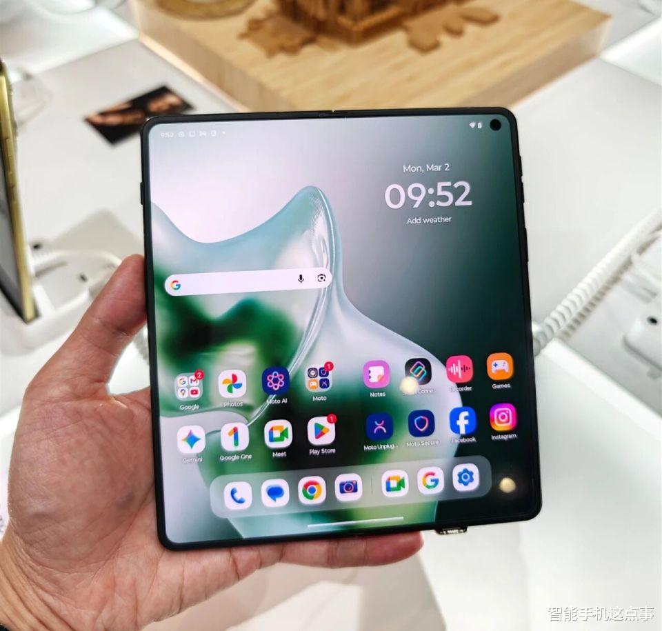 3月初的MWC 2026上,联想moto又发布了品牌首款大折叠屏手机razr fold,8.1英寸2K LTPO内屏、6.6英寸外屏,骁龙8 Gen 5平台,三颗5000万像素镜头,支持moto pen ultra手写笔。