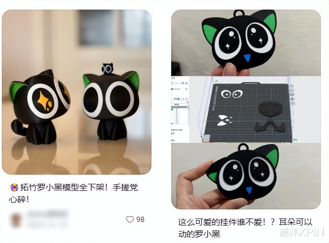 但是 Labubu 和罗小黑核心就是靠实体潮玩赚钱。3D 打印模型对他们的生意,可以说是精准打击,一击即中。