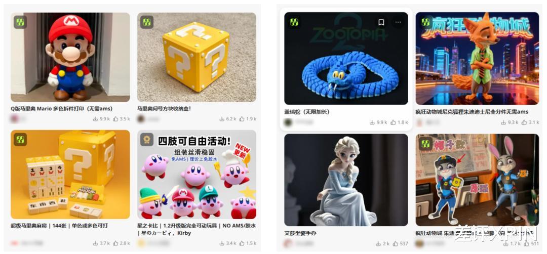 果然,大家一研究,发现基本都是从拓竹的3D模型社区 MakerWorld 上整来的免费模型。