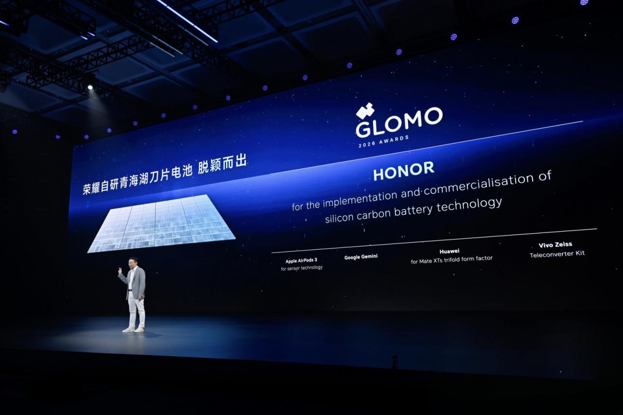 小雷了解到,荣耀实现大电池和小体积兼顾的关键在于自研电池技术取得了突破。MWC26上,荣耀硅碳电池荣获GLOMO“最佳突破创新奖”,这项奖项被誉为「通信界的奥斯卡」,含金量十足,是对荣耀电池自研技术的充分认可。
