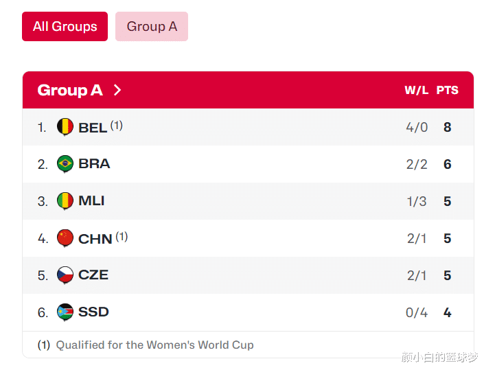 在这场比赛之前,巴西队76-73险胜马里队,这让中国女篮已经提前锁定小组前四的席位晋级世界杯。因为A组的比利时是欧洲杯冠军不占用晋级名额,所以小组后面的三名都可以晋级世界杯,所以已经提前两轮晋级的中国队没有任何包袱。
