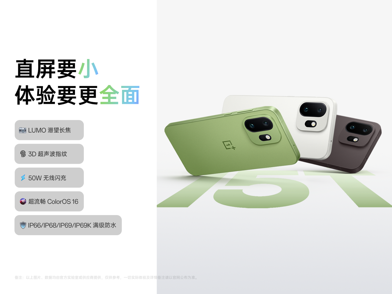 3 月 18 日,一加官宣新一代小屏旗舰一加 15T 将于 3 月 24 日正式发布。此次一加 15T 承袭数字系列的出色质感与舒适握持体验,搭载第五代骁龙 8 至尊版移动平台,在 6.32 英寸小机身下塞入 7500mAh 超巨量冰川电池,更在影像、散热、防水耐用,充电体验等维度全面进阶,打造出「又小又强又美又全面」的旗舰小屏体验。
