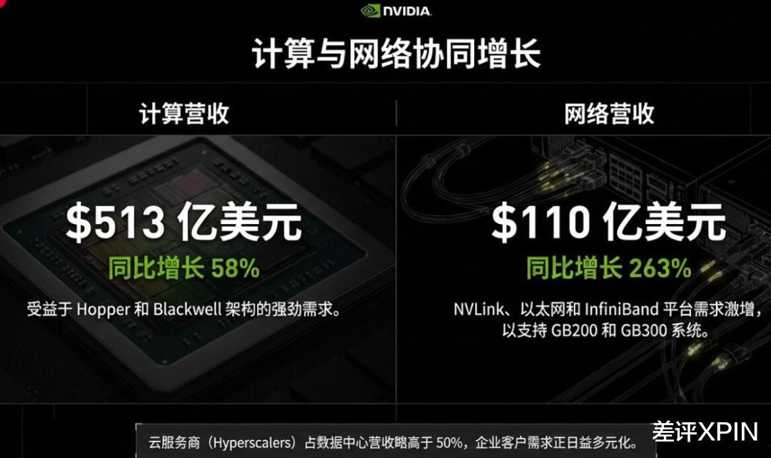 财报里,计算的收入是 513.34 亿美元,同比增长 58%,而网络的收入是 109.80 亿美元,增速达到了 263%。