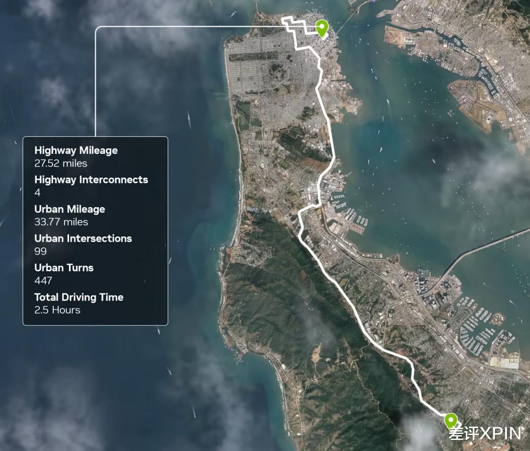 前些天,他们发布了一段老黄和汽车业务副总裁吴新宙,在旧金山体验自家智驾的视频。视频一共 20 来分钟,全程未出现人工接管情况。