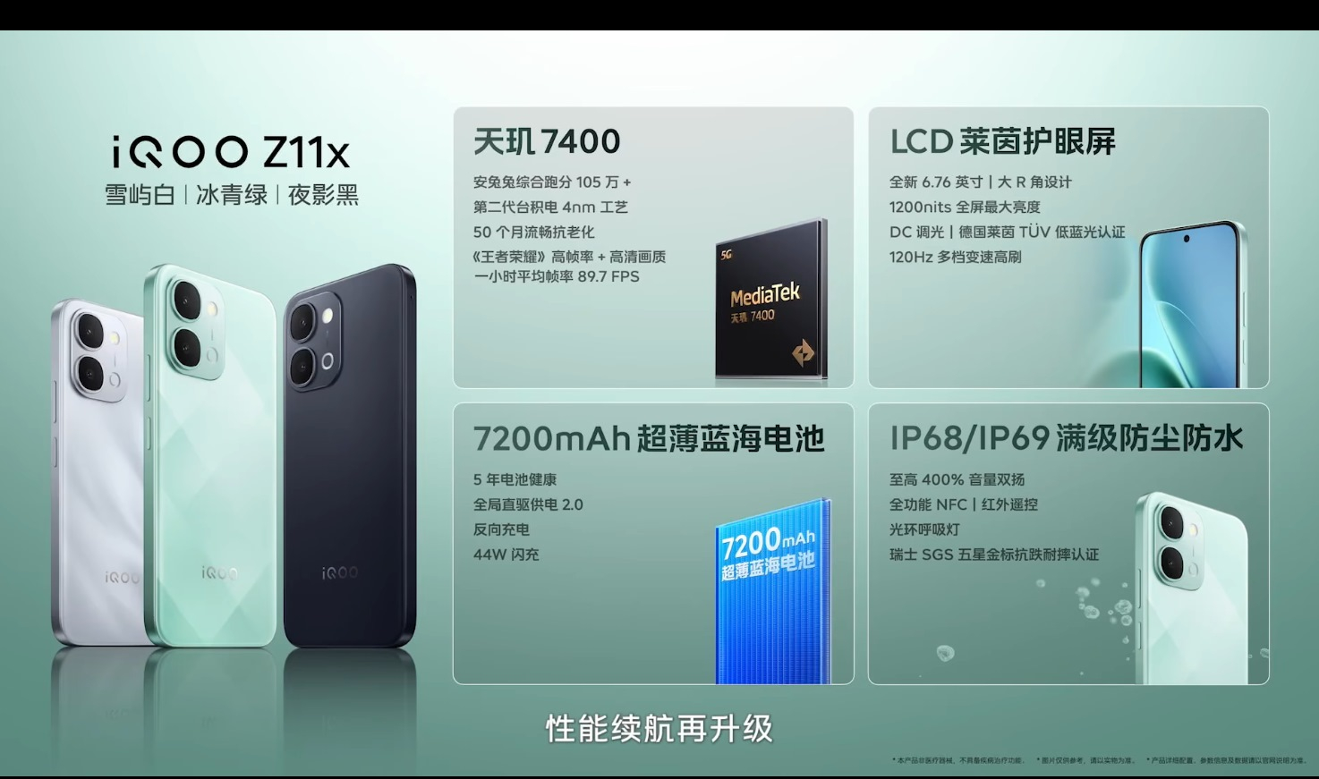 【iQOO Z11x】是天玑7400,LCD屏幕+7200mAh电池,首销带1年后盖宝+3年电池宝+1年进水宝: