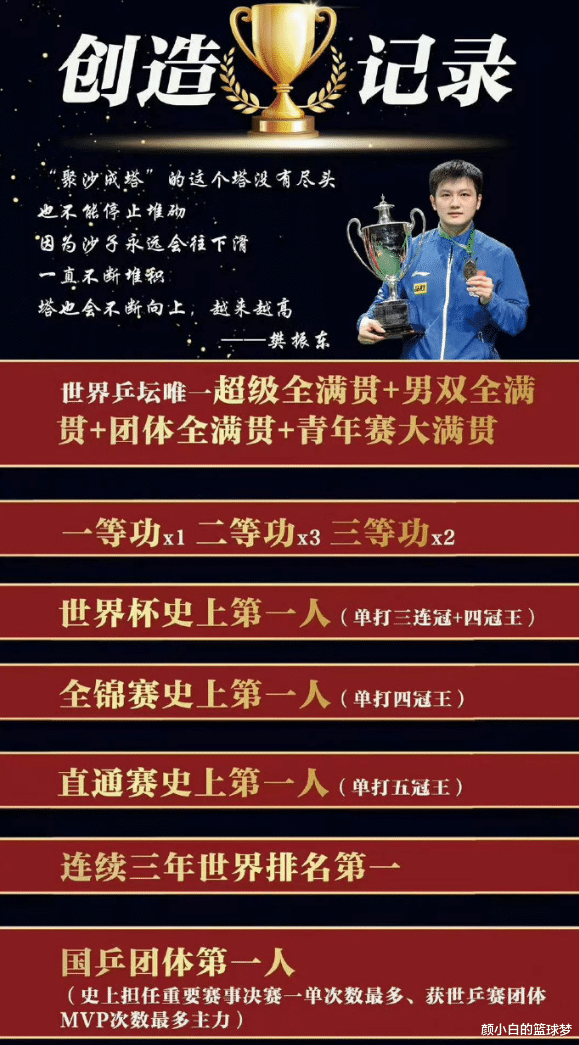 无数的球迷盛赞樊振东才是举世无双的那个,全运会6金王,乒超4个MVP,16岁最年轻的MVP,亚锦赛4冠王,他才是统治级别的王者。