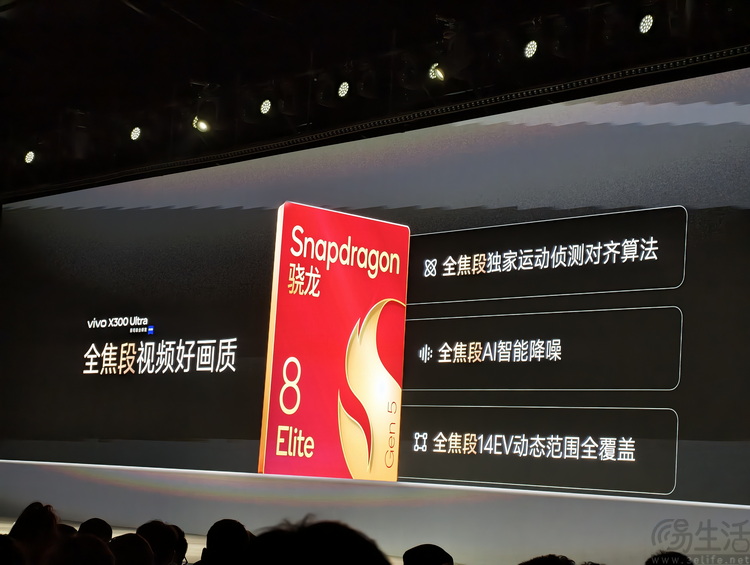 与此同时,有的朋友可能已经注意到,X300 Ultra不再使用vivo自研的V3+影像芯片。根据官方公布的信息,这正是由于第五代骁龙8至尊版提供了更好的算力基础。在vivo与高通的合作下,双方使用骁龙平台的NPU与ISP承载运动噪点消除算法(DMM)、多摄同步系统(MSCC),不仅带来了更好的多摄白平衡一致性,也进一步增强了X300 Ultra在开启AI功能时,录制视频的画面质量。