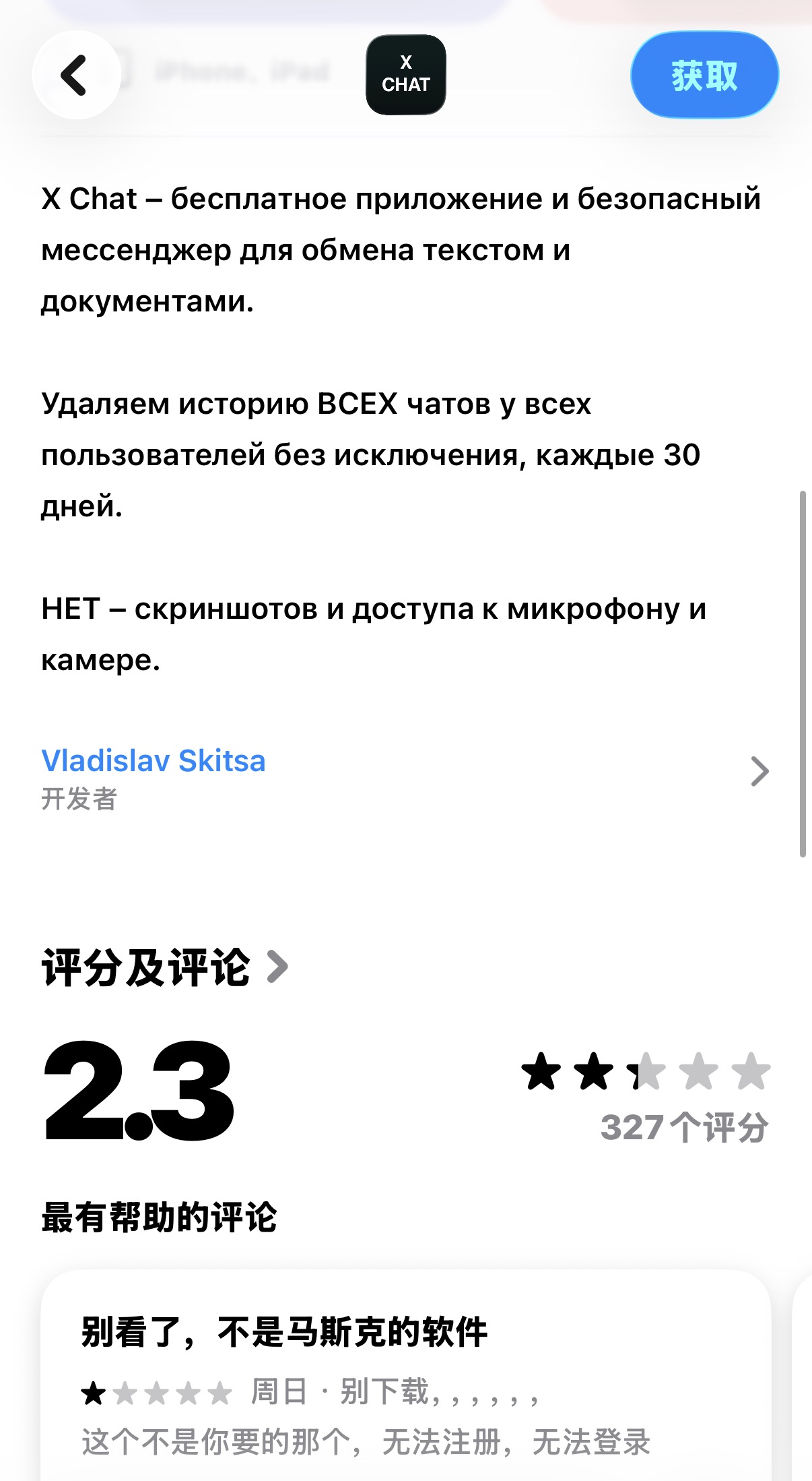 这款盗版应用早在2024年7月便推出首个版本,而马斯克官宣上线XChat聊天功能是在2025年6月。该应用或是提前获取相关消息抢注名称、刻意蹭名,也有可能只是单纯名称巧合。