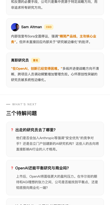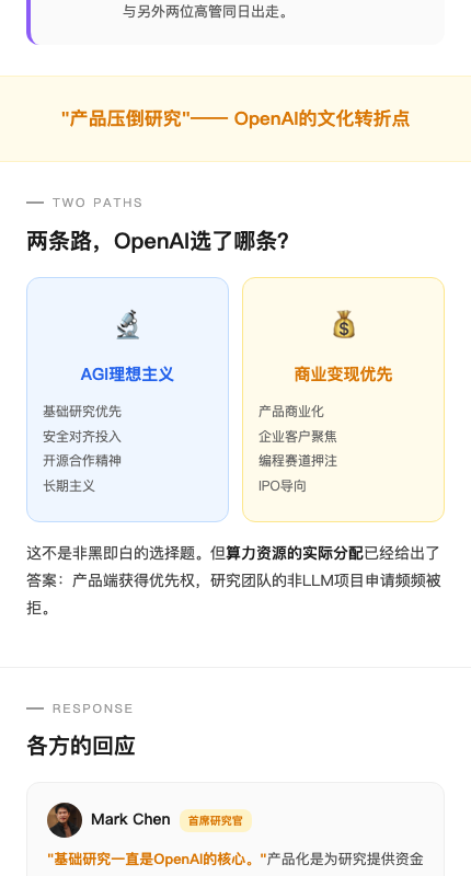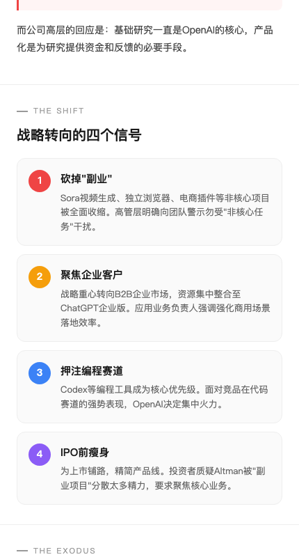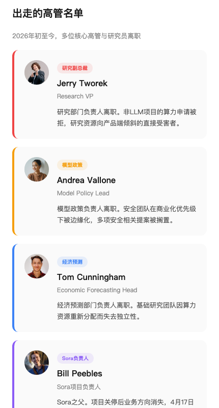 OpenAI高管集体出走背后:"光顾赚钱不搞研究"的内部矛盾到底有多深? 作者: • 更新时间:2026-04-20 04:00 • 本文内容由互联网用户自发贡献,该文观点仅代表作者本人。如发现本站有涉嫌抄袭侵权/违法违规的内容,请发送邮件至 203304862@qq.com 本文链接:https://jinnalai.com/jiaodian/823547.html