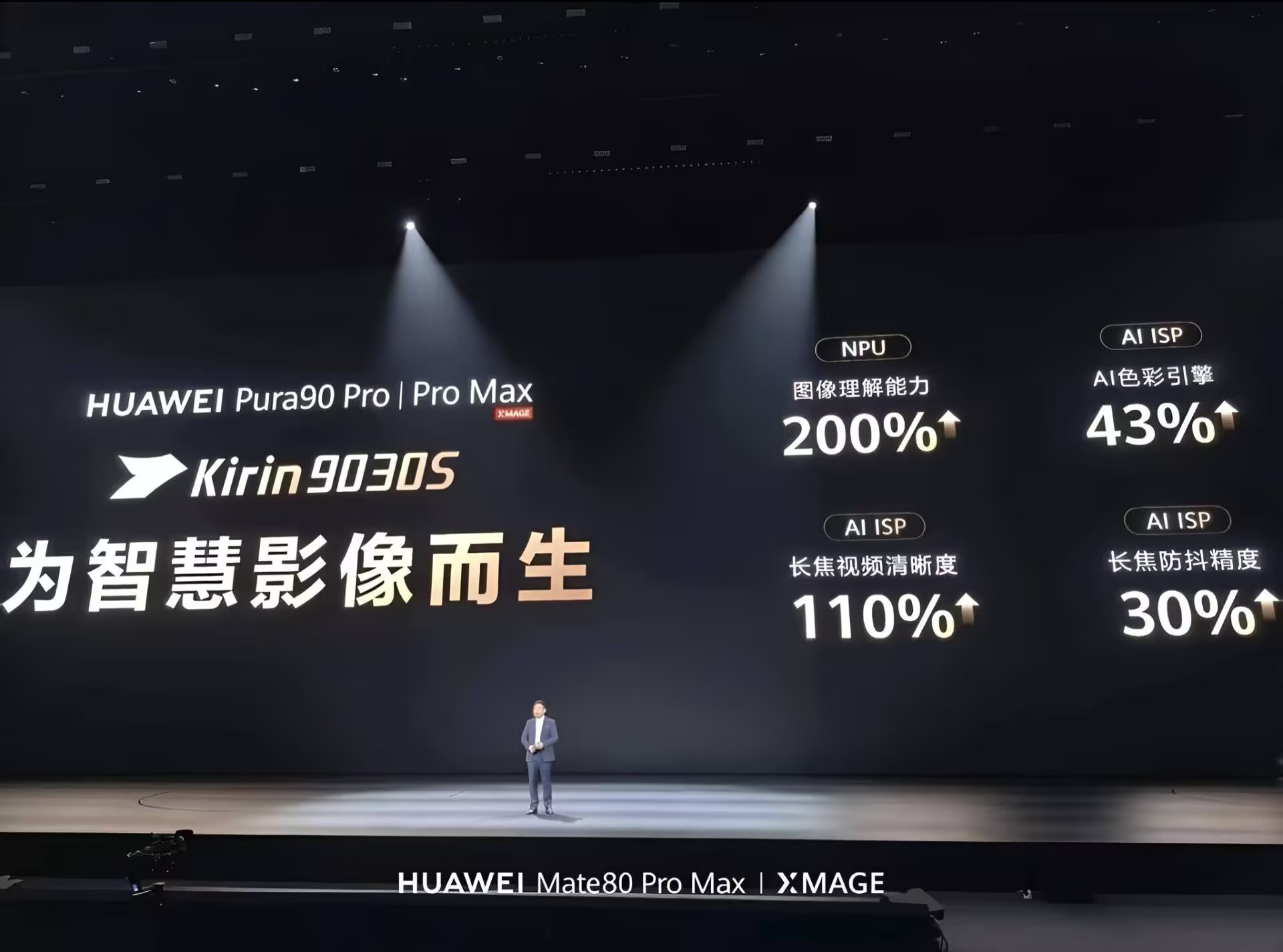 影像能力也是本次升级重点,麒麟9030S据称是专为智慧影像而生,NPU图像理解能力提升200%、AI ISP AI色彩引擎提升43%、AI ISP长焦视频清晰度提升110%、AI ISP长焦防抖精度提升30%。