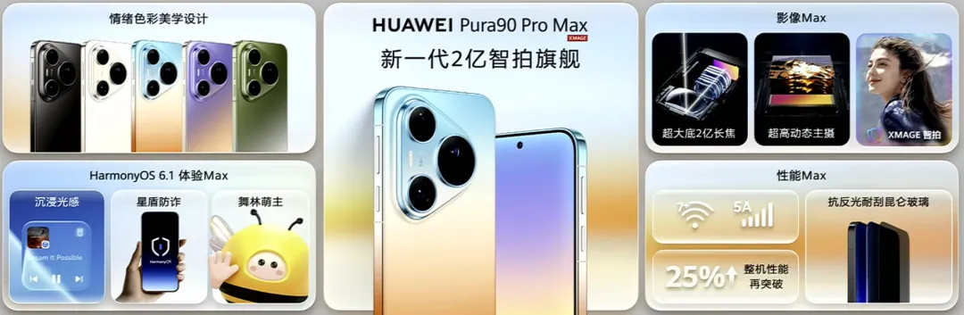 当然,Pura系列除了外观最重要的还得是影像系统。其中Pura90 Pro Max长焦摄像头搭载业界首发2亿像素RYYB传感器、三合一超聚光棱镜、2亿RAW域实时处理技术。