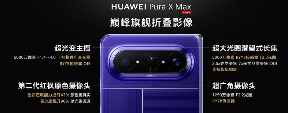 华为Pura X Max首发支持XMAGE智拍影像,还有全新第二代红枫影像加持,麒麟9030 Pro处理器。