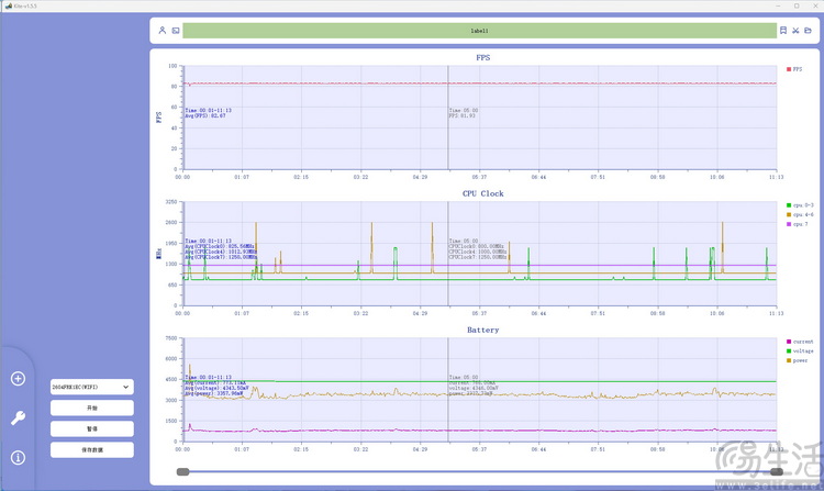 《王者荣耀》超分超帧 平均帧率82.67(超帧165FPS) 平均功耗3357.96mW