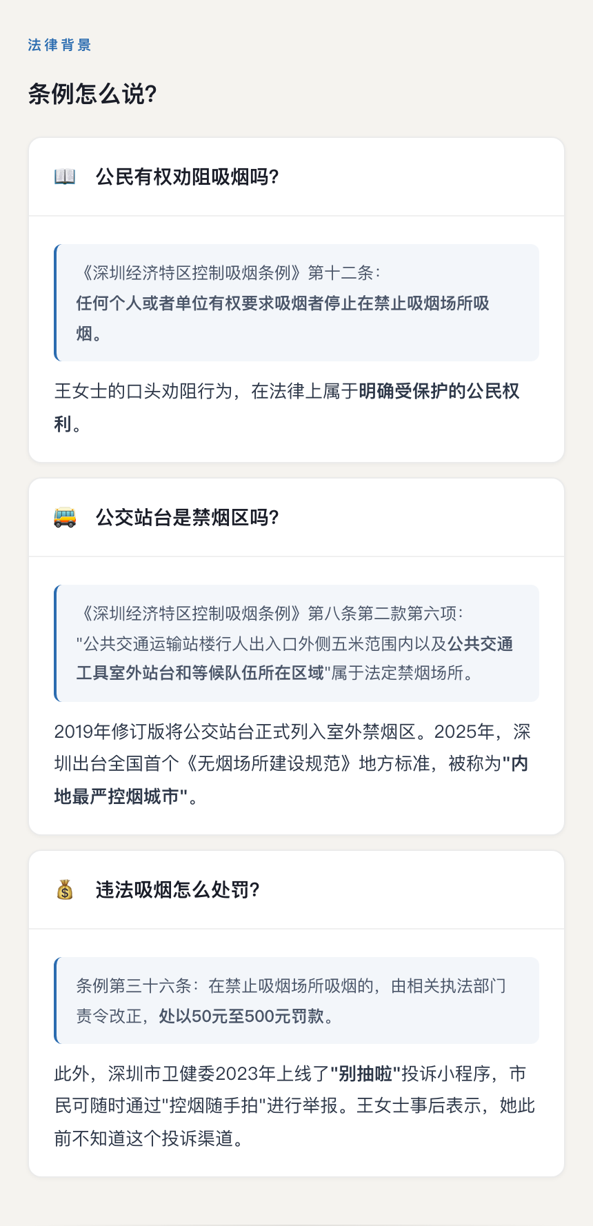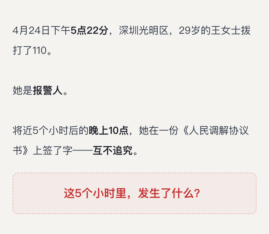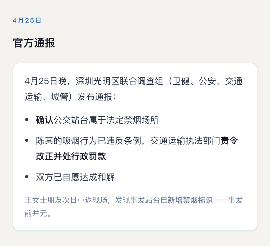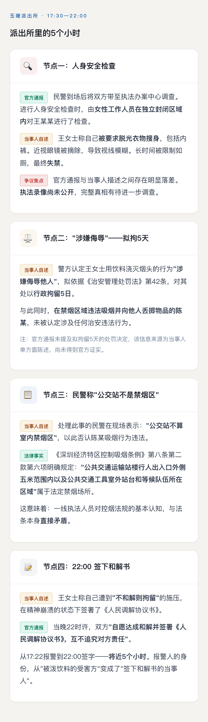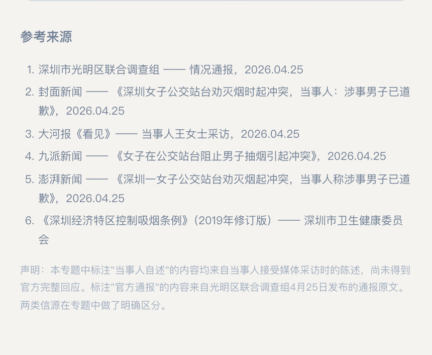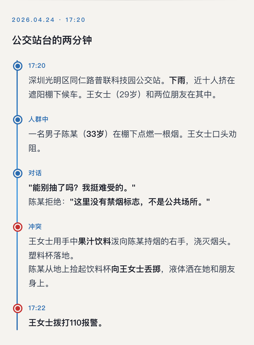 深圳女子公交站劝阻吸烟后报警,派出所5小时经历曝光:被搜身、被侮辱、被逼和解 作者: • 更新时间:2026-04-26 19:30 • 本文内容由互联网用户自发贡献,该文观点仅代表作者本人。如发现本站有涉嫌抄袭侵权/违法违规的内容,请发送邮件至 203304862@qq.com 本文链接:https://jinnalai.com/jiaodian/825103.html