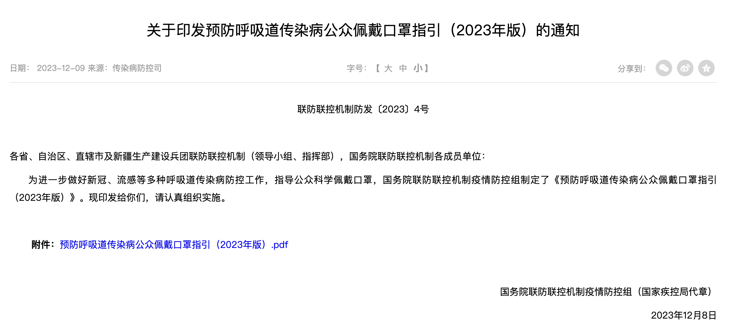 科学佩戴口罩是呼吸道传染病防控的有效措施。如何科学佩戴口罩预防呼吸道传染病?日前,国家疾控局制定印发《预防呼吸道传染病公众佩戴口罩指引(2023年版)》,指导公众科学规范佩戴口罩,防控多种呼吸道传染病传播,有效保护公众健康。