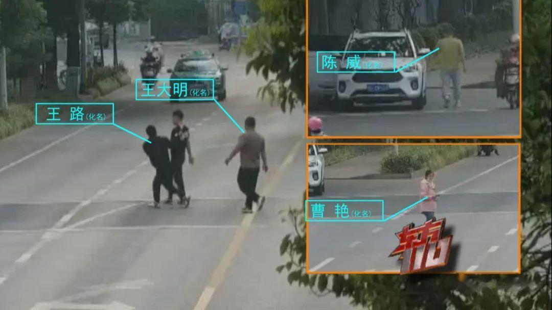 视频中推拉被害人朱先生上车的黑衣男子是犯罪嫌疑人王路(化名),紧随其后的是王路的弟弟王大明(化名),还有一名男子是王大明的朋友陈威(化名),粉衣女子是王路的女友曹艳(化名)。