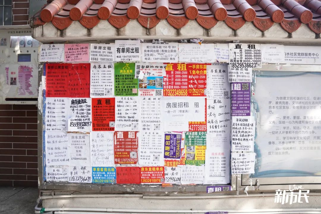 同样的,村里租房景象也很热闹,宣传墙贴满了崭新的招租广告,有南水村内的,也有旁边小区的,其中大多为一房东直租,没有中介赚差价。
