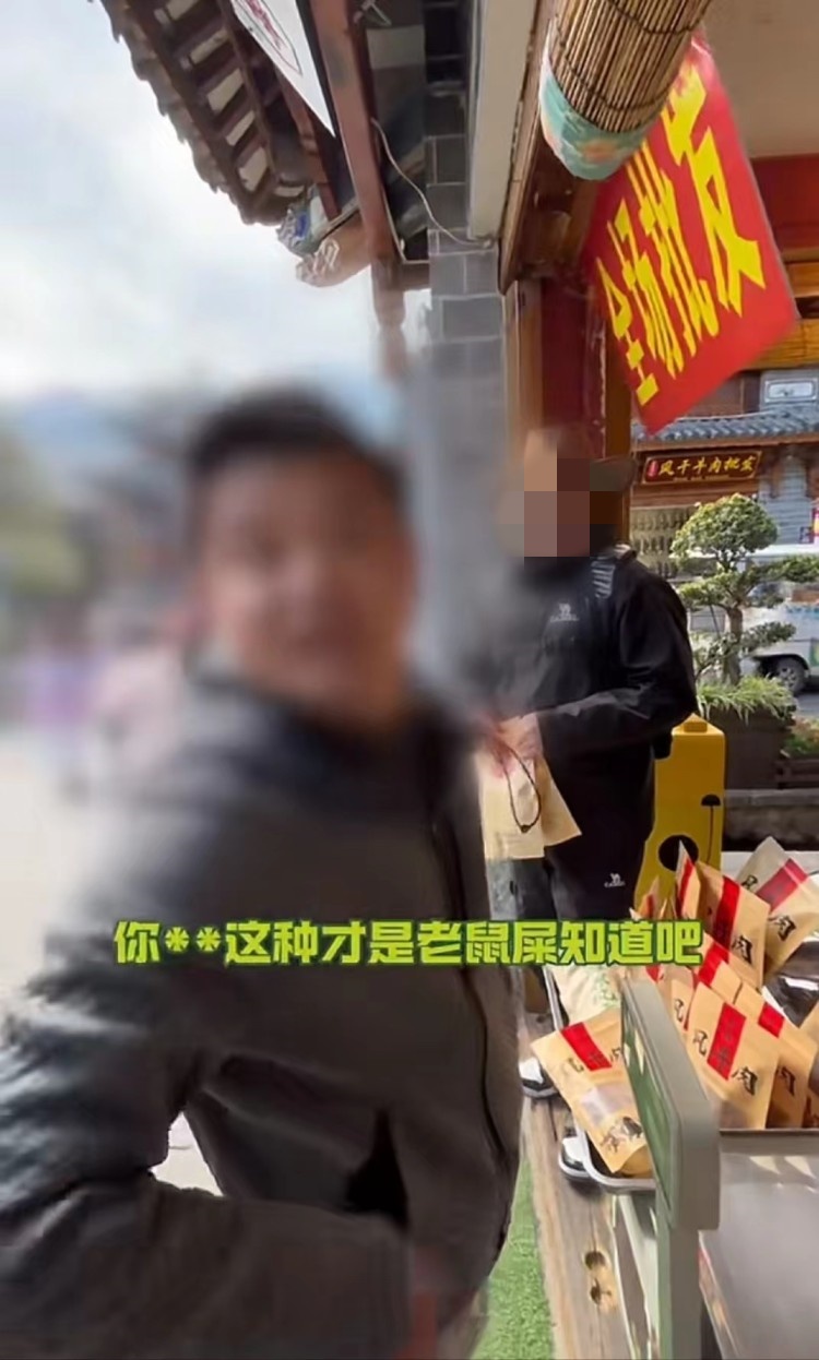 值得注意的是,在该博主表示要报市监局处理时,一名陌生男子上前反怼维权博主是“老鼠屎”和“网络乞丐”。