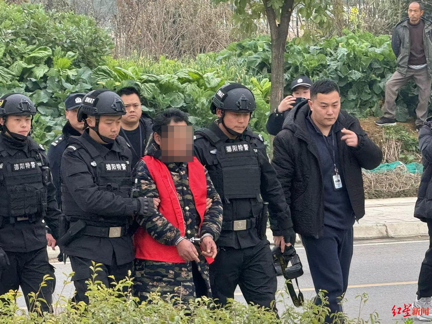 2024年1月29日,涉嫌杀害前妻潜逃的德阳刑案嫌疑人李小龙在四川广元被警方抓获,1月30日上午警方押解其指认现场。(红星新闻此前报道:德阳警方悬赏通缉嫌疑人李小龙在广元被抓获此前涉嫌杀害前妻潜逃)