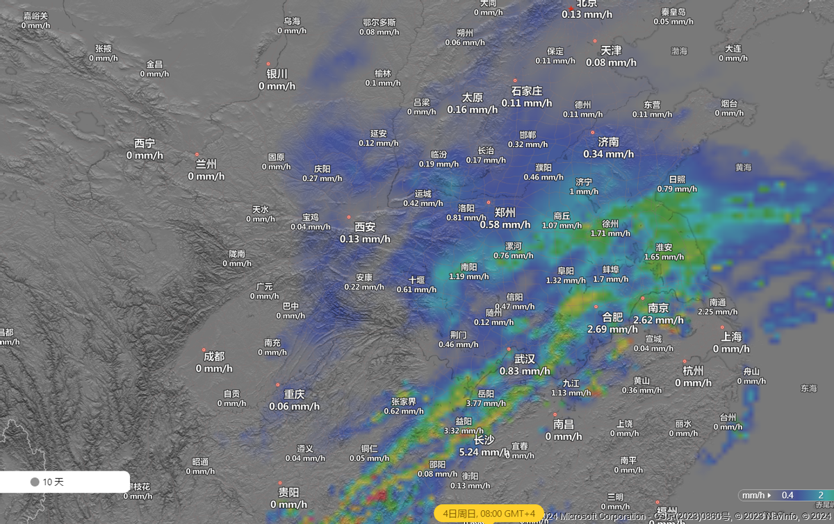 在2月5日,雨雪结尾的时段,华北的降雪范围扩大,山东是降雪的中心,而河北,湖北,湖南等地的降雪减弱,长江中下游地区基本都是降雨了,也没有暴雨。