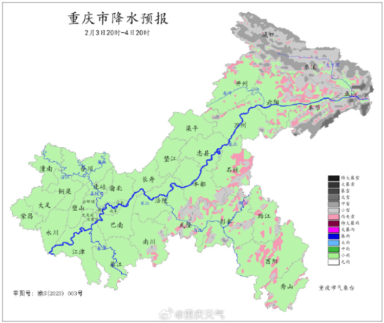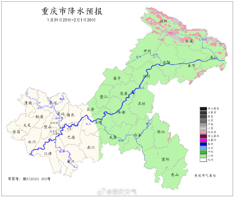 据重庆市气象台介绍,受南支槽和冷空气共同影响,预计1月31日夜间到2月4日白天,重庆市多阴雨雪天气,中东部高海拔地区雨雪相态复杂,可出现雨夹雪、纯雪以及冻雨。