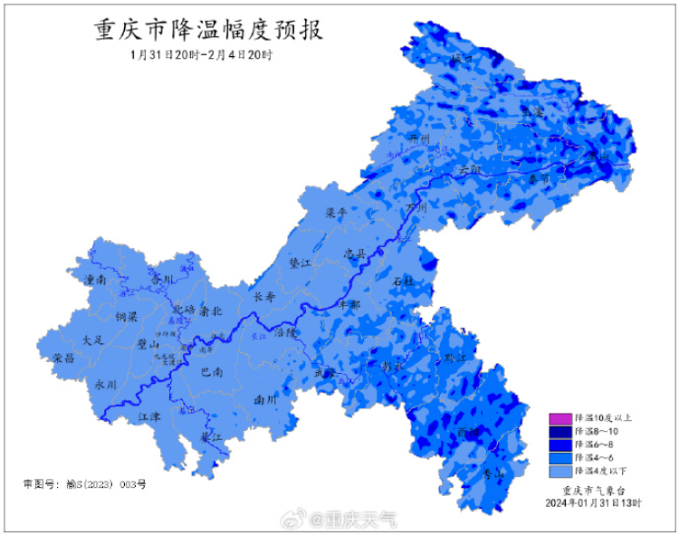 冷空气来了!1月31日,上游新闻记者从重庆市气象台获悉,预计1月31日夜间到2月4日白天,重庆多阴雨雪天气,中东部海拔1000米以上地区有雨夹雪或小到中雪,重庆市内各地日平均气温将下降2~5°C。