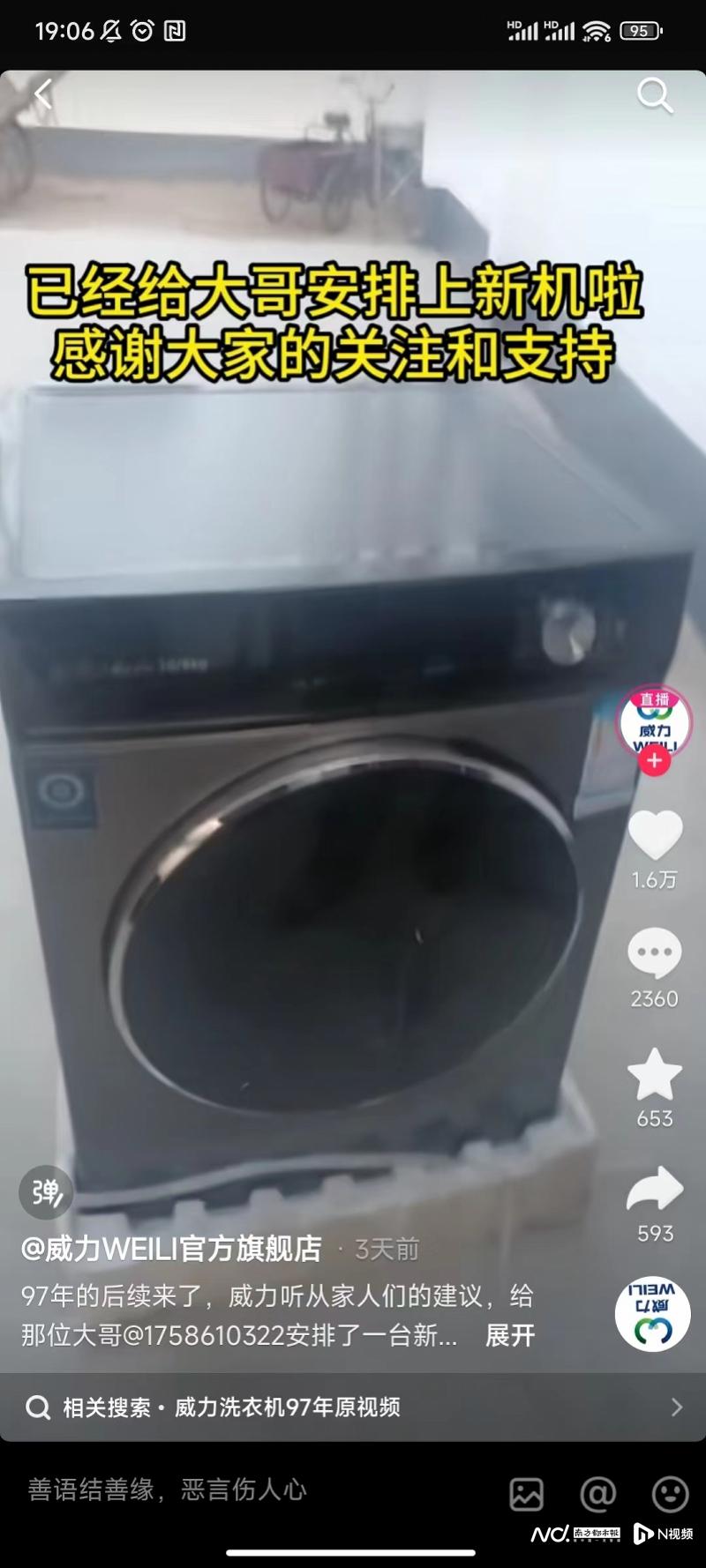 在这则火爆全网的视频中,网友调侃道:“这哪一年的洗衣机!生产厂家估计已经倒闭了!”不成想,此番调侃竟引来了威力洗衣机的关注,厂家迅速作出回应,表示威力并没有倒闭,而且一直在默默前行。而为了感谢这位老顾客20多年的支持和肯定,厂家还给他送了一台全新的、当下流行的滚筒洗衣机。