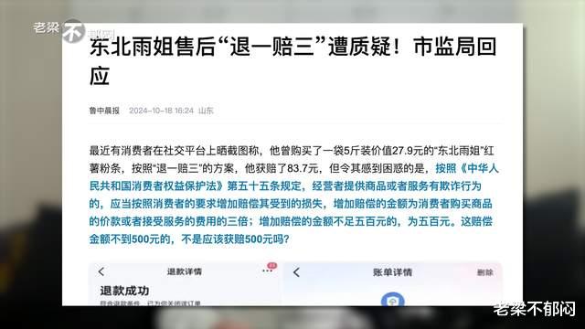 另外消保法规定了赔偿不足五百元的为五百元,食品安全法规定增加赔偿的金额不足一千元的为一千元,但这个就是民事部分了,这事儿不归执法部门管,如果商家这边不执行,消费者需要自行起诉,之前东北雨姐案件中出现这个情况,市监局也只能说帮你协商。
