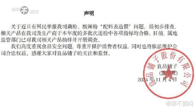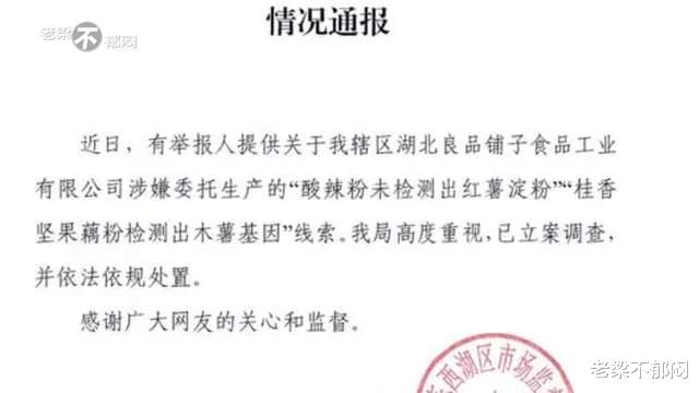 良品铺子也发了一个通报,意思就是说以前抽检都是合格的,现在当地执法部门正在调查,良品铺子这通报看其实是有点火星的,咱们后边细说。