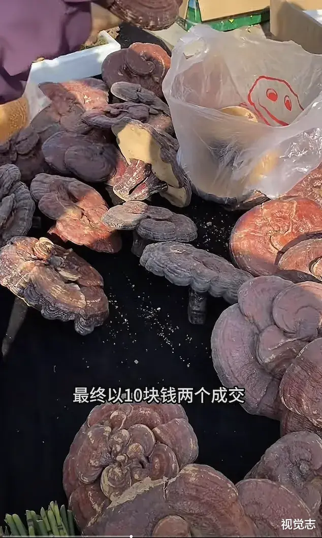那些山林珍品绝对能让人大开眼界。除了卖蘑菇、榛子的普通摊位,灵芝和人参都能非常随性地摆在地上售卖。摊主报价的语气平淡得像在讨论今天的天气。有网友在东北10块钱买了2个灵芝,看得评论区的网友手机都要裂开了。