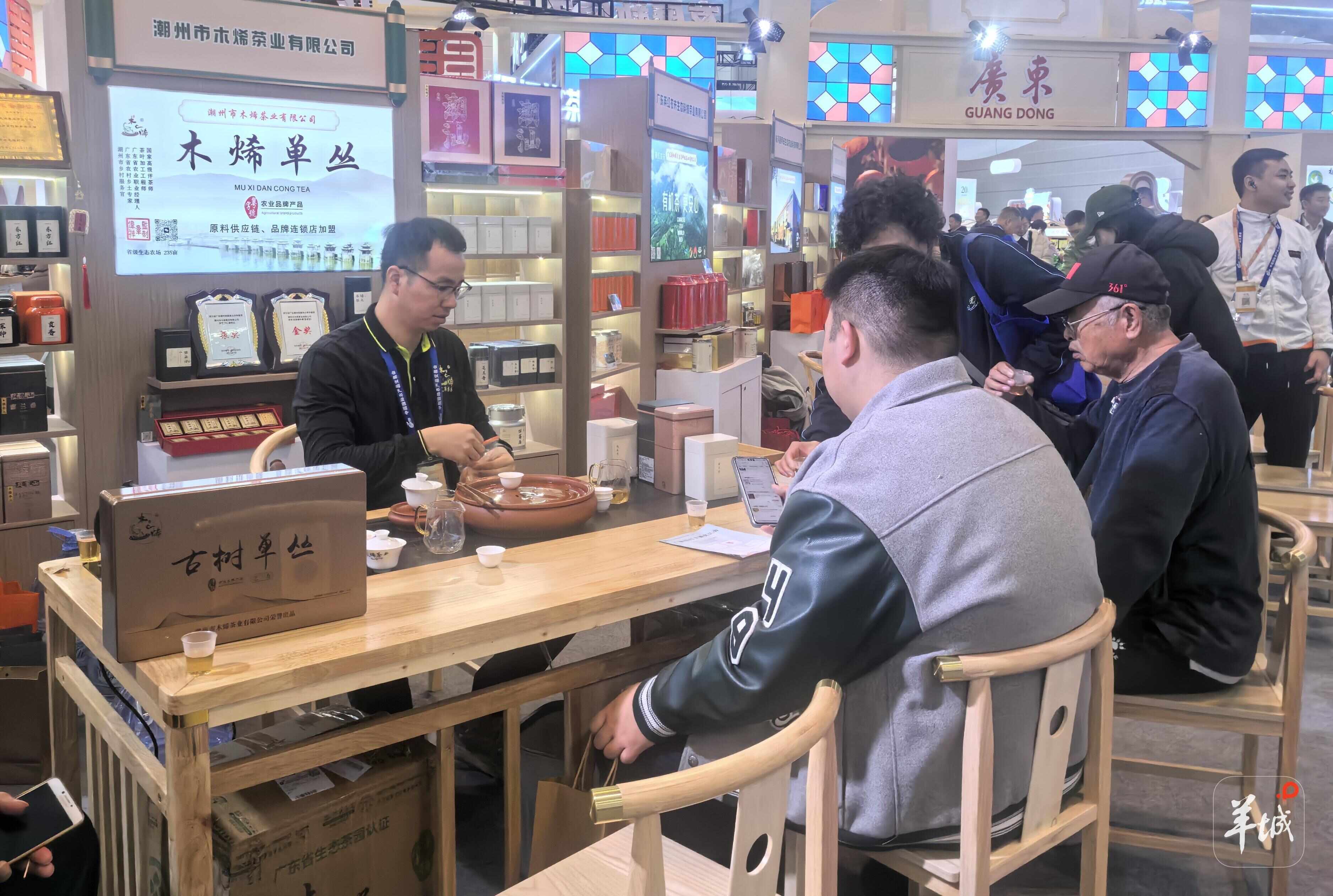 潮州市木烯茶业有限公司总经理章伟祥正给采购商解释凤凰单丛茶的新工艺,他告诉记者:“潮州凤凰单丛茶近年来的市场知名度越来越高,这几天和国内各地采购商和消费者交流,他们不但知道凤凰单丛茶,还懂香型。这次我们专门多带了鸭屎香、黄枝香等北方消费者普遍喜欢的高香型茶叶,市场对我们新品的接受度还挺高的。”