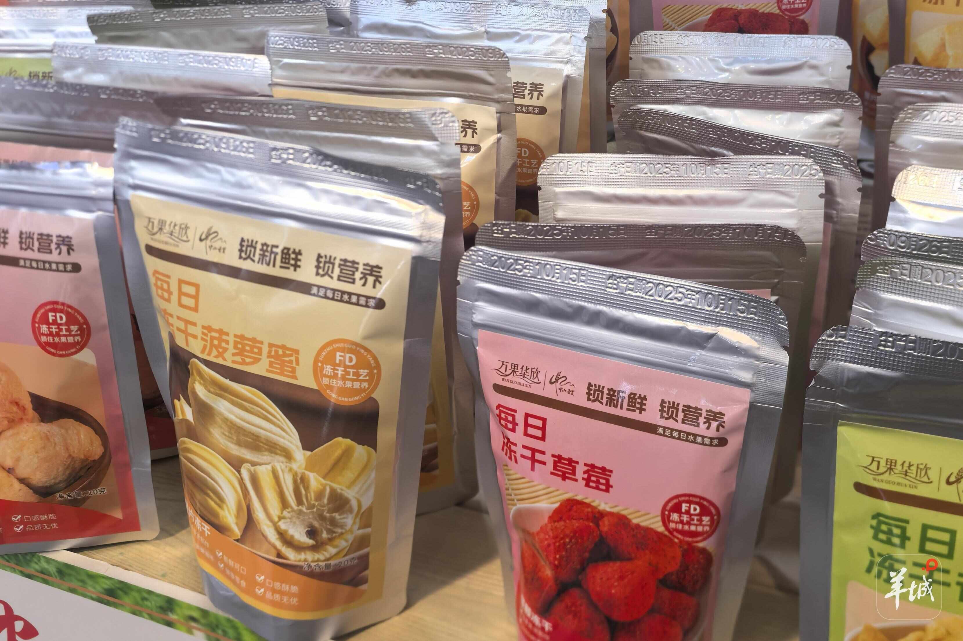 中山市万华农业科技有限公司以种火龙果起家,但这次参展的清一色是水果冻干。董事长邱海燕告诉记者:“鲜果的销售周期太短了,所以近年来我们除了卖鲜果,一直积极研究水果的精深加工,水果冻干就是一个很好的赛道。目前国内的冻干市场才刚起步,这几天消费者的反馈都很积极,也给了我们很多建议。我们现在除了开拓国内市场,还积极研究出海业务,精深加工的农产品才能走得更远。”