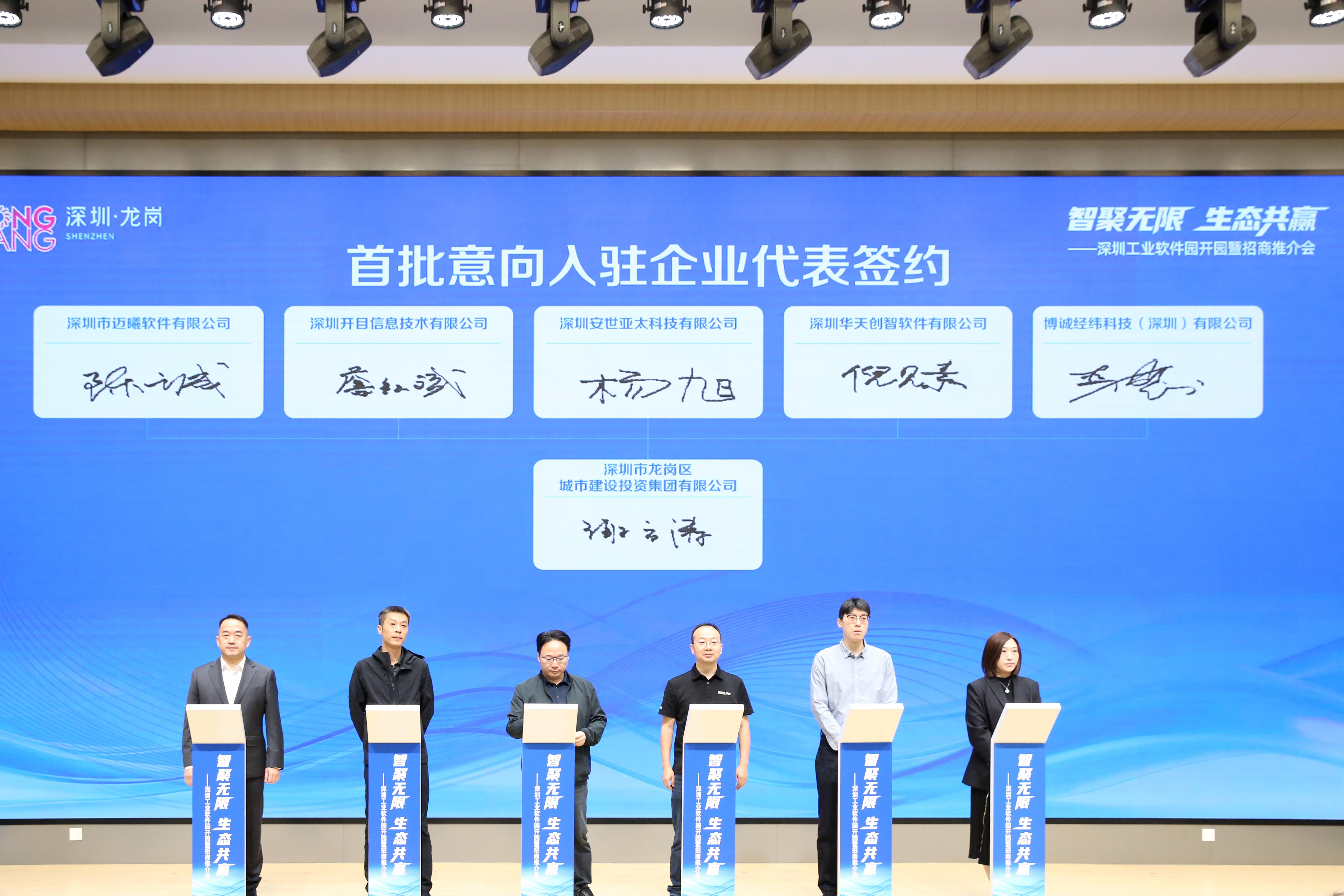 开园当天,深圳泊松软件技术有限公司、中汽软件(深圳)有限公司、三岳数维(深圳)科技有限公司等15家企业完成集中签约,充分彰显了园区强大的吸引力和发展潜力。首批签约入驻企业集中在软件攻关、软件研发、国产软件系统方面,与工业园定位高度契合。谢云涛表示,相信这些企业的入驻,能够加速产业生态的培育,吸引更多工业软件相关企业集聚。